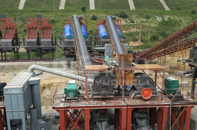 方案二:ZGC2560給料機+PCZ2125重錘(chuí)破+PC1220錘破(2台)+2YKZ3070振動篩(12台)+配套設備;