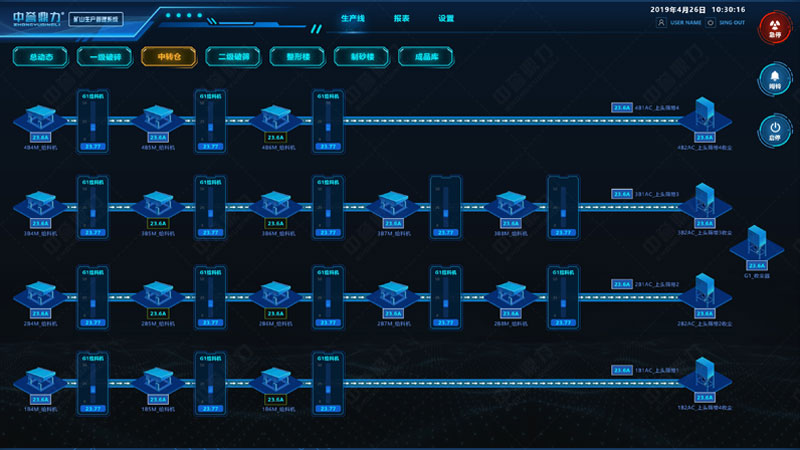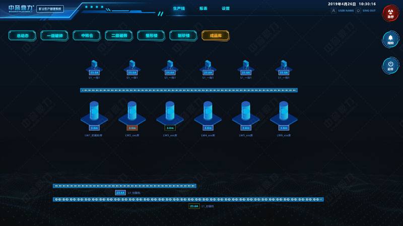 中譽鼎力礦山生產管(guǎn)理係統(又叫(jiào)DCS超級中控係統),是為實現礦山智(zhì)能化、自動化生產而(ér)開發的可視化生產管理係(xì)統。