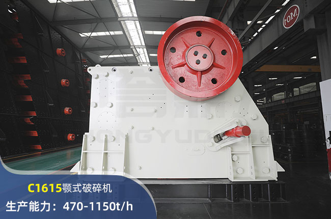 C1615顎式破碎機進料粒度(dù)≤1400mm,出料大小≤120mm,時產在470-1150噸,電(diàn)機是250千瓦的,屬於中等產量的一破設備,因其自身結構,造價消耗低(dī),很受市場歡迎。