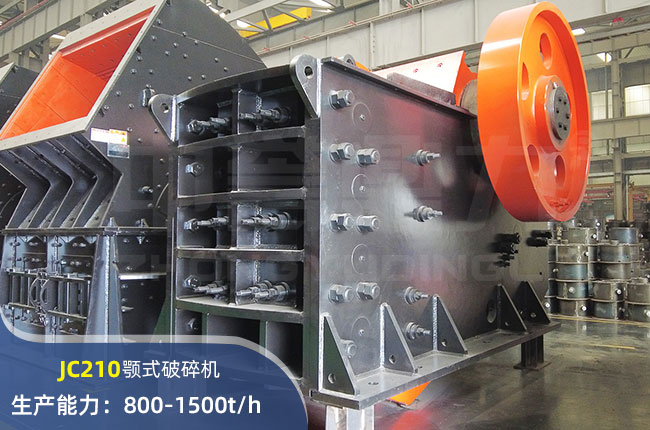 JC210顎(è)式破碎機屬於大型鄂破,時產量在800-1500噸左右,在生產線在擔當一破設備,擁有(yǒu)破碎(suì)比(bǐ)大,構造簡要,工作靠譜,維修簡單(dān),運營費用低等優勢。