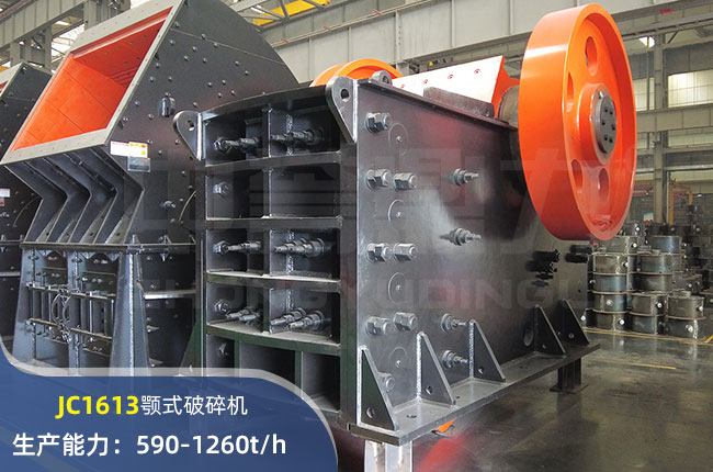 JC1613顎式破碎機進料口尺寸1600×1300mm,進料粒度(dù)≤1110mm,出料大小≤175mm,電機功率280kw,時(shí)產1260噸左右。