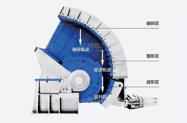 [重錘(chuí)反擊破碎(suì)機圖(tú)片]可液壓開蓋,無篦條是通過液壓控製活動襯板調節出料大小。