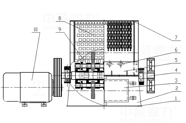通過1214箱式破碎機內部結構圖可知,箱破組成包括轉子、前麵、圓(yuán)鋼、上麵板部件、機篩網(wǎng)、底座下法蘭、底座前後板、門鋇、電(diàn)機。