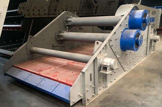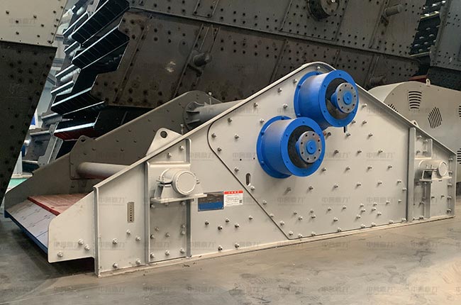 主要由篩箱、箱式激振器、支(zhī)撐(chēng)係統及(jí)電(diàn)機組成,通過膠帶聯軸驅動箱式(shì)激振器,箱式激振器內部齒輪作同步反向運轉,兩組(zǔ)偏心質量產生的離心力沿振(zhèn)動方向的分力疊加,反向(xiàng)離心抵消,從而形成單一的沿振動(dòng)方向的激振動,使篩箱做往複直線運動。