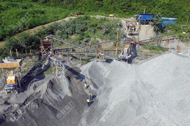 该项目直接采用一台重型锤式破碎机(jī),型号为PCZ1512,时产250-320吨,符合用户日产(chǎn)3000吨的生产需求,生产线除(chú)去破碎设备外,就是两台3层(céng)筛网的筛分机,可以直接筛分出0-30mm的混合料、10—20、10—30、瓜米、石粉(fěn)等物料