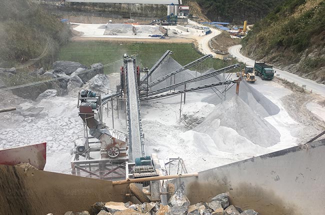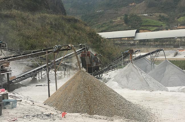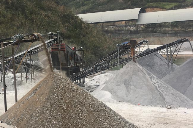 廣西南寧時產200噸石子生產線選用(yòng)除土型給料(liào)機、一台錘式破碎機(jī)、一(yī)台4層篩網的振動篩,生產線生產4種不同規格的石料。