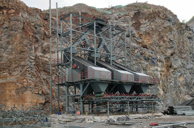 億達(dá)建材石料有限公司新建的這條日(rì)產10000噸的石料生產線(時產量(liàng)在1000噸),采用重型錘式破碎機+整形破+配(pèi)套設備,石料裝車采(cǎi)用封閉的地龍皮帶自動裝車係統。