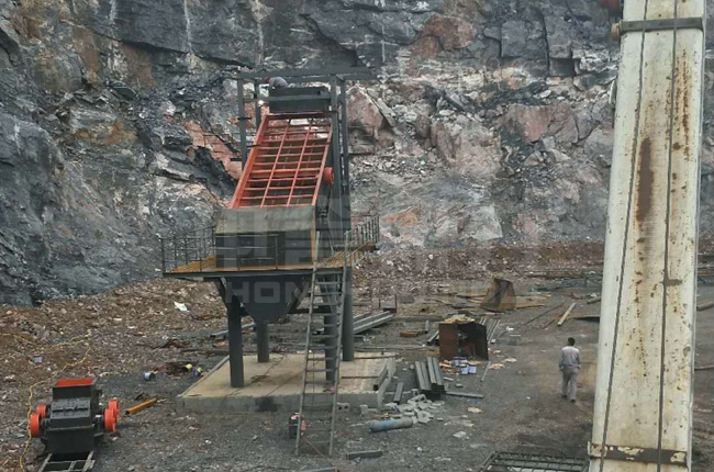 該項目是(shì)中譽鼎力提供設備並安裝,設備10月(yuè)16日配送進場,預計12月18日竣工,是一條200噸石子破碎製(zhì)砂生(shēng)產線(xiàn)。
