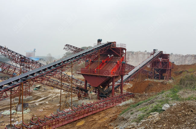 該(gāi)項目16年9月投產,是一條主要加工石灰石的石料生產線,因其要求時產500噸,產能較小,中譽鼎力為其配置了“1538給料機+1615重錘(chuí)破+2470振動篩(shāi)”。