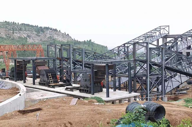 設備配置:DLZG2560振動給料機、DLPCZ2125重型錘式反擊破碎機、DLPC1622整形(xíng)式(shì)破(pò)碎機(jī)、DL3YKZ3680振動篩、皮帶輸送機(jī)等設備