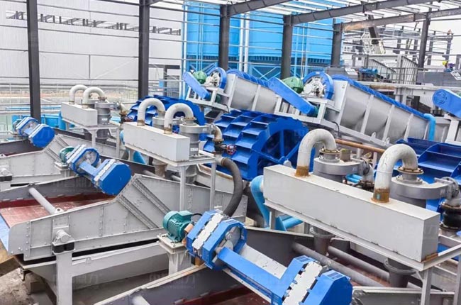 設備配置(zhì):DLBW重(chóng)型板式給料機、DLPCZ重型錘式反擊破碎機、DLPC整形式破碎機、DL3YKZ重型圓振篩(shāi)、DLSM幹式製砂整形係統、DLLXS螺旋(xuán)洗砂機、DLXSH細沙回收脫(tuō)水一(yī)體機等