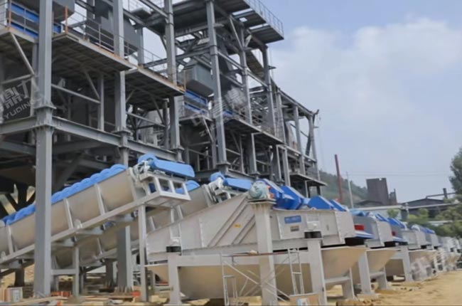 雙線並(bìng)行方(fāng)案,可根據需求單(dān)雙線運行,某(mǒu)一工藝環節出問題不形(xíng)象另一生產線正常運行,可避免全(quán)線停機,在(zài)洗沙工藝(yì)中,采用(yòng)輪式洗(xǐ)砂機+脫水篩組合(hé),優(yōu)勢是比螺旋洗砂機省水且洗砂流失少。