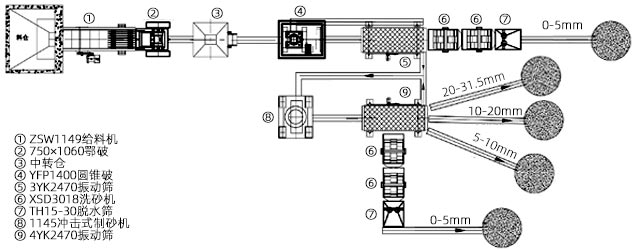 180-250t/h河(hé)卵石製砂工藝流程圖